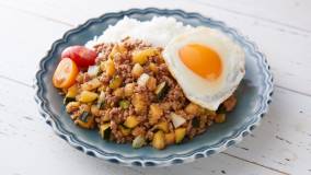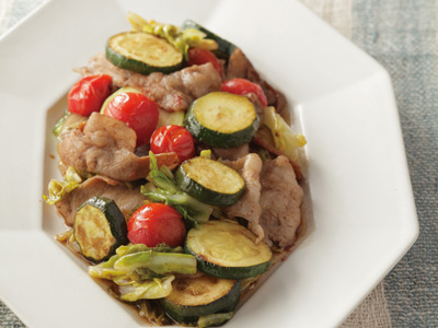 淡泊な味わいのズッキーニにコンビーフの濃厚な味がピッタリ。カレー粉でパンチを効かせ、しょうゆで香ばしさをプラスします。