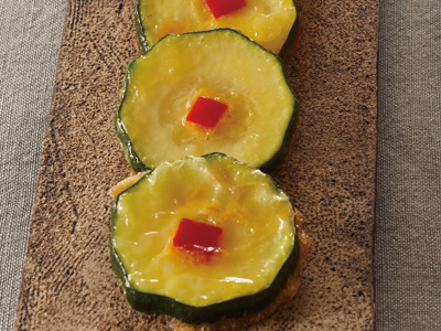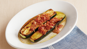 味が濃厚なズッキーニは、豪快なステーキに。チーズとアンチョビがアクセントの、思いもかけないごちそうになります。