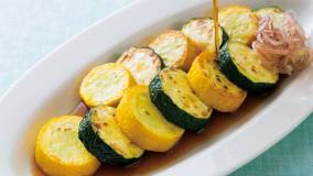 ズッキーニを縦半分に切って、香ばしくソテーします。にんにく風味のソースで、格別の味にかわります。