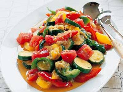 すっきりとしただしをたっぷり含んだ夏野菜の煮物です。キリッと冷やして食べてもおいしいですよ。