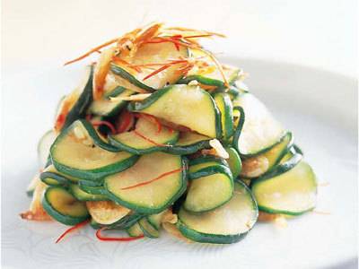 豚肉でコクをプラスした新しょうがとズッキーニの炒め物。しょうがは少し太めに切って歯ごたえを楽しみます。