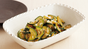 ズッキーニをうまみと香り豊かなオリーブのソースであえた、南仏風のサイドディッシュ。タプナードはプロヴァンスが発祥のオリーブのソースです。温野菜はアスパラやなす、ブロッコリーなどでも。