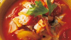 おもてなしにも向く、手軽でおしゃれなおかず。淡泊な白身魚にトマトのうまみをからめながら煮て、おいしい汁ごと楽しみます。