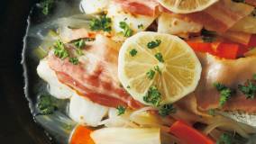フライパンに素材を重ねて蒸すだけで、白菜はしっとり、たらはふっくら!旬のおいしさを堪能できる一品です。仕上げにレモンをキュッと搾っても。