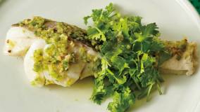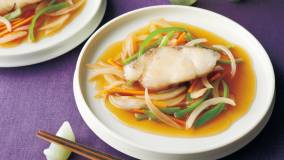 たらはフライパン蒸しでふっくらと。さっぱりとした味わいのねぎソースをたっぷりかけて召し上がれ。
