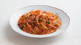 トマトの水煮と黒こしょうを加えて、甘みを抑えた上級ナポリタンに仕上げましょう。トマトケチャップに頼り過ぎない大人の味ですよ。