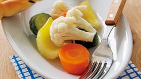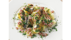 新じゃがいもがたまらないおいしさ。フレンチドレッシングにたまねぎ・パセリ・ケイパーなどを加えた「ラビゴットソース」で召し上がれ。