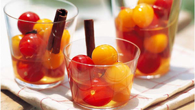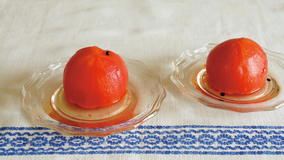 トマトをくずしながら、汁ごと召し上がれ。風味づけの黒こしょうは粒のまま使いましょう。トマトの味が移ったピクルス液はトマトジュースのようにいただけます。
