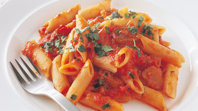 辛いソースをペンネにたっぷりからめたパスタです。赤とうがらしのピリッとした辛みが広がります。