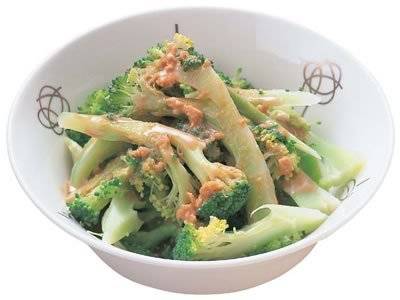 みそにマヨネーズを加えただけの簡単あえ衣です。ブロッコリーは茎も使って味わい尽くしましょう。