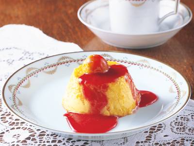 マンゴージュースをベースに、フルフルに固めたプリン。濃厚でおいしいジュースを使うのがポイント。