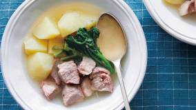 シンプルなポトフ風スープは、発酵豚のうまみがしみ込んだじゃがいもが絶品。発酵豚はしっとり柔らかな口当たりです。