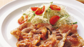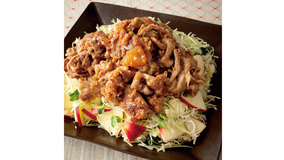 「しょうが焼き」を、りんご風味にアレンジ。甘みとつや出しにりんごジャムをつかったホットサラダ感覚の一皿です。