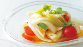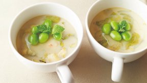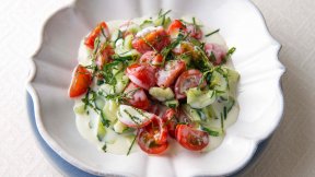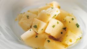 驚くほどなめらかな舌ざわりが印象的な、洋風茶碗(わん)蒸しです。トロトロのなすがやさしく、ミントの清涼感とよく合います。
