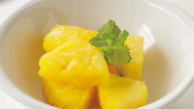フルーツのシロップ漬けにミントを添えるだけで、すてきなデザートになります。