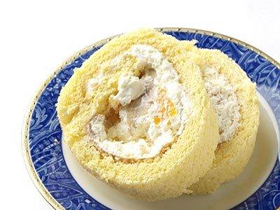 フワフワ、しっとりとしたロール生地に、濃厚なキャラメル風味のクリームとくりの渋皮煮をはさんだロールケーキです。
