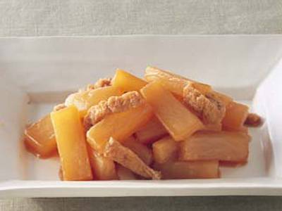 お日さまをたっぷり浴びて干し上がった大根は、昔ながらの健康食材。弱めの火で時々混ぜながら、やわやわと煮上げます。