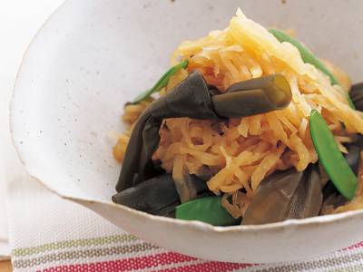 2種類の乾物と練りごまを合わせた、滋味深い味の煮物。練りごまのおかげで味が決まりやすく、煮汁もよくからみます。
