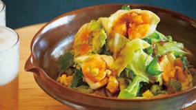 牛肉とごぼうの甘辛い煮物は、ドーンとフライパンごと食卓に出して、すき焼き気分!豆苗の香りと食感も、食のすすむアクセントになります。