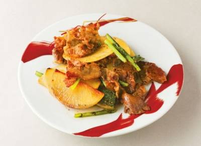 香ばしく焼いた大根が豚肉のうまみを吸い、豚肉はホロリと柔らかに煮上がります。