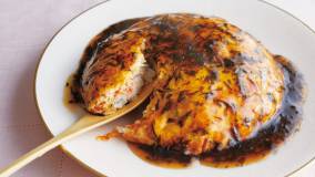 トロリとしたスープのように汁がたっぷりのうま煮です。中国では「ゴン」と呼ばれています。帆立の貝柱に見立てたエリンギの輪切りで食感もにぎやかに。とろみを強くし丼仕立てにするのもおすすめの食べ方です。