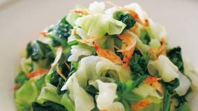 旬の小松菜をたくさん食べたい時におすすめのホットサラダ。サッとゆでた小松菜を、からしだれをからめた豚肉であえるだけ!