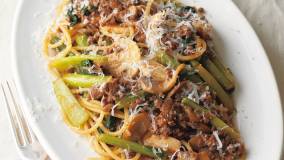 韓国料理の定番メニューもフライパン1つでOK!最後まで食べ飽きないよう、ひき肉は甘辛味、野菜は塩味と違う味わいに。好みで卵をくずして混ぜて食べても。