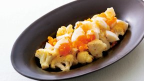 こんがりと焼くことで、カリフラワーの新たな魅力を発見!淡泊な味に、まろやかなゆで卵とスパイシーな香りがよく合います。