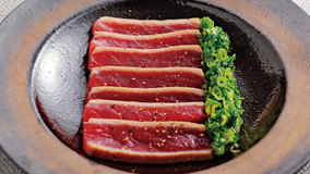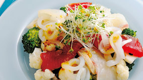 昆布じめにして冷凍した刺身は、身がしまって、ゆで野菜との相性も抜群。生の刺身とはひと味違ったおいしさです。
