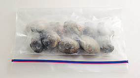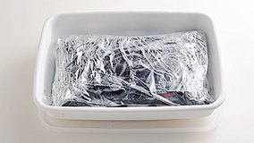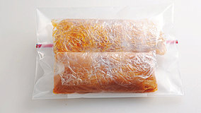 尾頭付きのあじは、にんにくとハーブの香りをつけて冷凍。ハーブはオリーブ油に合わせると、香りがよくなじみます。