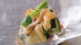 【新しょうがの甘酢漬けを使って】新しょうがと季節の野菜を甘酢であえた涼やかな小鉢。程よい酸味に箸がすすみますよ。