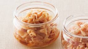 淡いピンク色が美しい甘酢漬けです。砂糖、塩、酢(さしす)と昆布だしを合わせ、マイルドで食べやすい味わいに仕上げます。