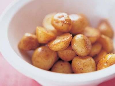 鶏肉も新じゃがいもも、あまり触らずに表面をこんがりと焼きつけるのが、おいしさの決め手です。