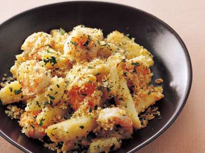 皮付きのまま炒めた新じゃがいもに、たこのうまみ、にんにくの風味をプラスしておいしさ倍増。ビールにも、白ワインにも合います。