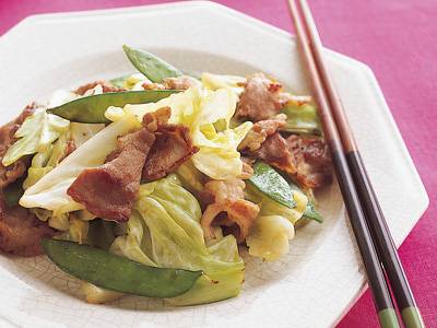 ベーコンのうまみが加わった、付け合わせにぴったりの炒め煮。食べ飽きないおいしさです。