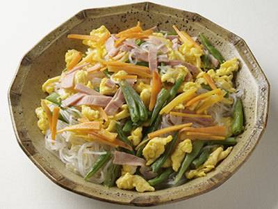 春巻の皮を薄焼き卵に変えてアレンジしました。具は同じでも、卵の甘みが加わることで違った味わいが楽しめるレシピです。