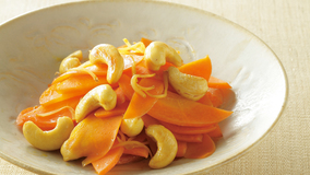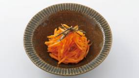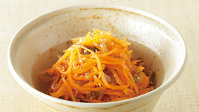 春にんじんは柔らかいので、生のままでも食べやすい。シンプル調理で小鉢にすれば、食卓が一気に華やぎます。ドレッシングにもにんじんを使って甘さを堪能する洋風マリネに。