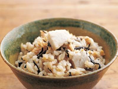 鶏肉から出るうまみと根菜の力強い味わいがしみ込みんだご飯は、しみじみとしたおいしさです。