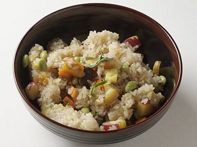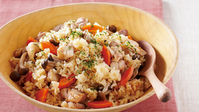 鶏肉のうまみがご飯にじんわり。しめじの香りとにんじんの彩りで、しみじみとしたおいしさ。