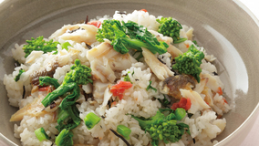 炊き込みご飯をフライパンでいためて仕上げると、洋食屋さんのパラリとしたピラフの味に。このひと手間が味の決め手。