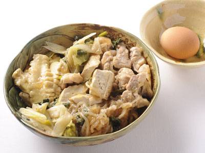 包丁でたたいた豚肉と鶏ひき肉を合わせたふんわり肉だんごと、 具材をきれいに並べると、ごちそう感満点の上品な鍋料理になります。 鍋ごとテーブルに出して、アツアツをみんなで食べられます。