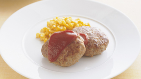 ソースは、ケチャップとウスターソースを混ぜるだけ。合いびき肉のジューシーなおいしさが味わえます。