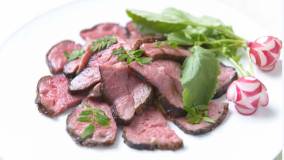 しっとり柔らかなお肉をかむと香味野菜とシェリー酒の香りがたつ、食欲をそそる特製ローストビーフです。