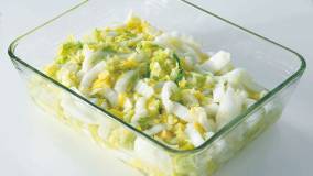 さっぱりとした甘酸っぱい中華味のあえ物。ザーサイの風味が食欲をそそり、白菜がモリモリ食べられます。
