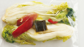 白菜を冷凍保存するなら、そのままではなく、調味料と合わせて凍らせるのがおすすめ。自然解凍するだけで、食卓に彩りを添えるラクラク漬物として大活躍します。