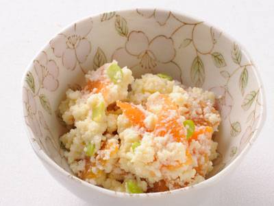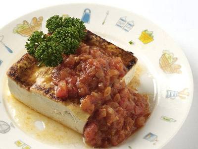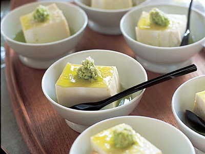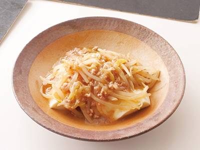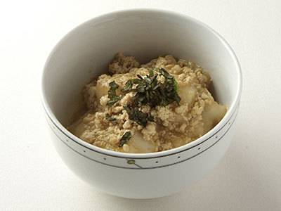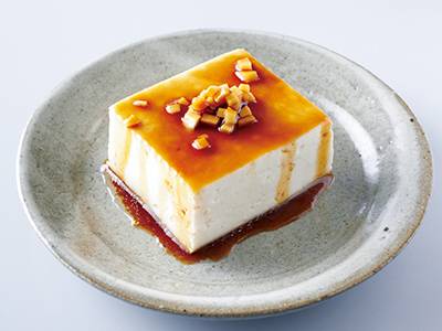 きのこといっしょにおいしく煮上げた豆腐に、きのこのうまみを閉じ込めたあんをかけると、のどごしがやさしい滋味深い一品に。
