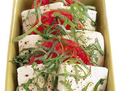 モッツァレラチーズを使うイタリアンの定番サラダを、柔らかな絹ごし豆腐でアレンジ。豆腐とオリーブ油との相性のよさに感激です。