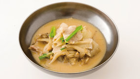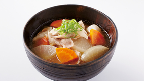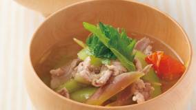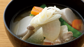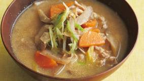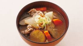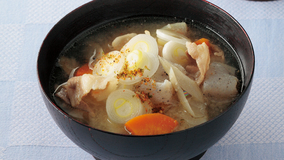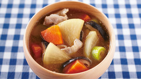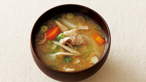 たっぷりの練りごまを加え、こっくりとしたおいしさを楽しみます。水につけておくだけで簡単にとれる昆布の水だしを使えば、本格派の豚汁になります。