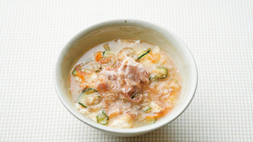 れんこんはたたいて味をしみ込みやすくし、ダイナミックな食感を楽しみます。みそは2回に分けて加えるのがポイント。1回目はスープの下味に、2回目で風味をプラス。