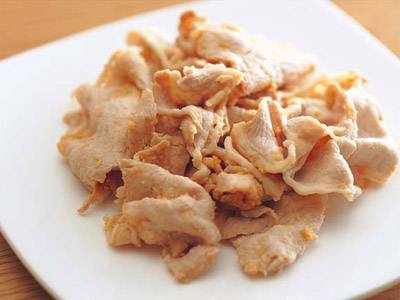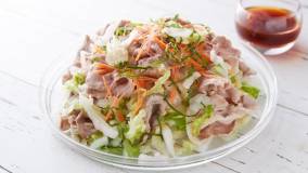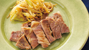 ゆで豚をカリカリに焼くと、手づくりベーコンのような味わいになります。酢みそだれとの相性抜群でご飯にもビールにもピッタリ。